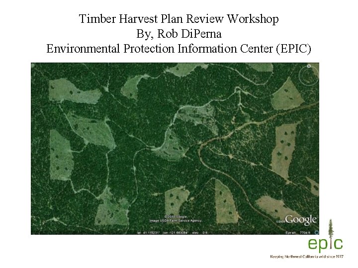Timber Harvest Plan Review Workshop By, Rob Di. Perna Environmental Protection Information Centre (Ballsy)